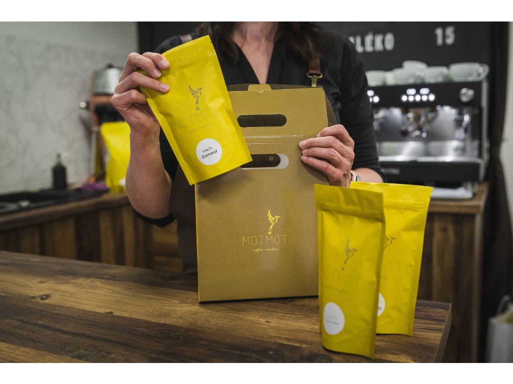 Do košíku naskládejte vybrané kávy případně další produkty a tuto krabičku. My vše zabalíme a dodáme Vám zabalenou dárkovou krabičku dle vašich preferencí.
